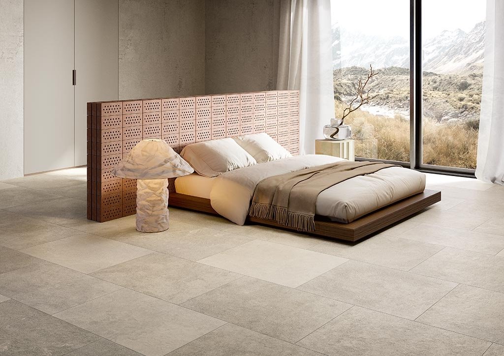 Slip-resistant honed limestone tiles with natural thermal mass—cool in summer, radiant in winter. Acid-resistant finish withstands vineyard use.